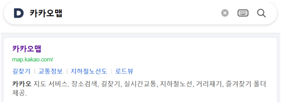 1️⃣ 다음 검색창에 ‘카카오맵’을 검색해서 접속합니다. 설치 없이 바로 이용할 수 있어 간편합니다.
