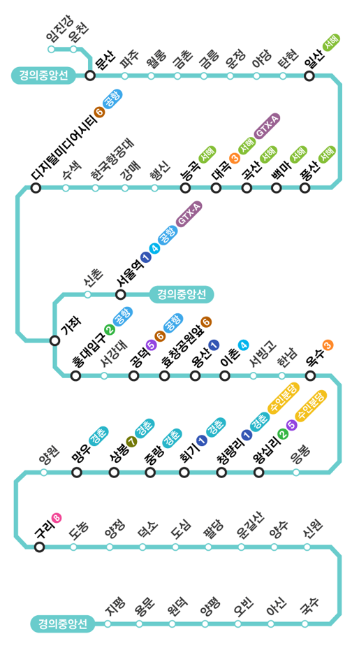 📌 경의중앙선은 파주 임진강에서 출발해 서울을 지나 경기도 양평 지평까지 이어지는 수도권 광역전철입니다.