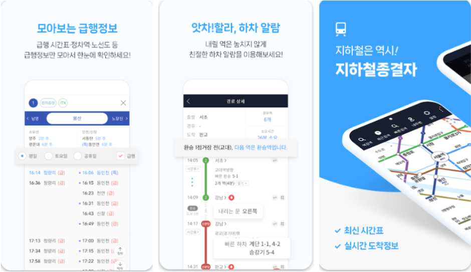 ✅️ 열차가 언제 도착하는지, 지금 어디쯤 있는지 헷갈릴 때가 많습니다. 이럴 땐 ‘지하철종결자’ 앱을 이용하면 도착 예정 시각부터 열차 위치, 배차 정보까지 한눈에 확인할 수 있어 매우 편리해요.