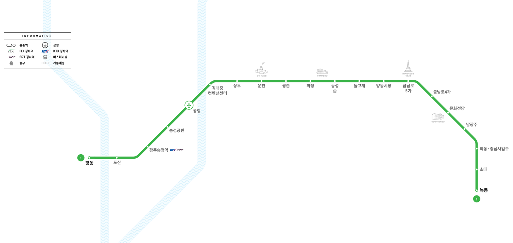 ✅ 현재 광주에서 운영 중인 지하철 1호선은 녹동에서 평동까지를 연결하며, 도심을 중심으로 중요한 지역을 빠르게 이어주는 핵심 교통 수단입니다.