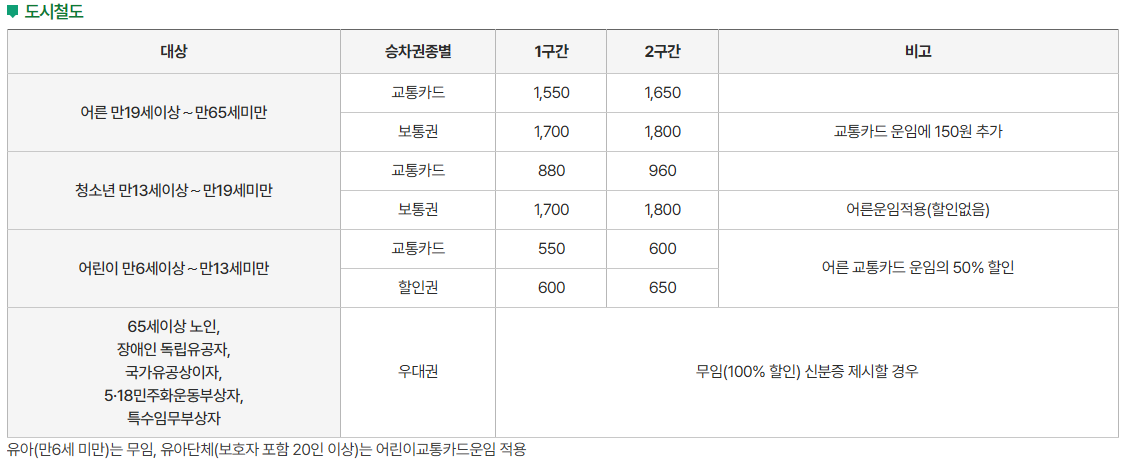 현금 요금 기준으로 1구간: 1,700원, 2구간: 1,800원 이지만, 교통카드 이용 시 할인 혜택이 적용되어, 약 150원 정도 저렴한 금액으로 지하철을 이용할 수 있습니다. 자주 이용하시는 분이라면 교통카드를 활용하는 것이 훨씬 경제적입니다.