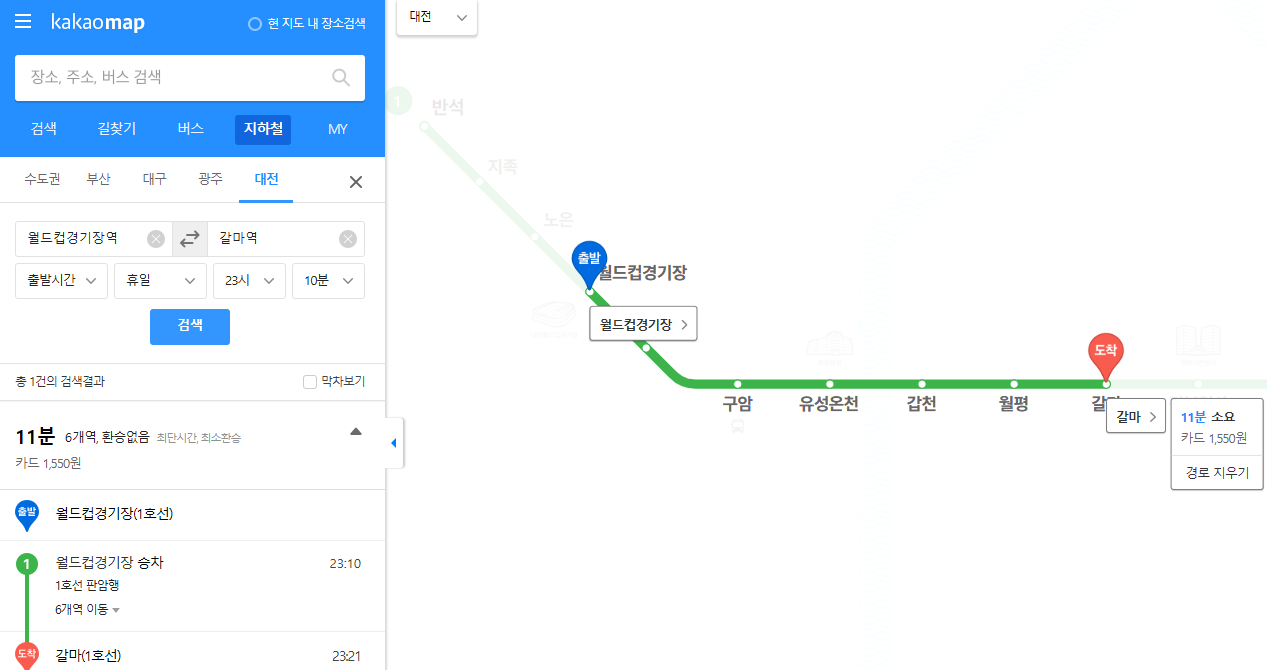 ✅️ 대전 지하철은 매일 오전 5시 30분부터 밤 11시 30분 전후로 운행되며, 대부분의 노선은 이 시간대 내에서 이용이 가능합니다.