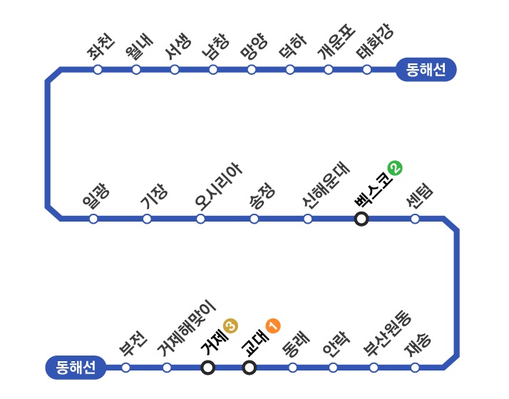 - 센텀역: 해운대, 벡스코, 영화의 전당 등 주요 관광지와 가까워 관광객 이용이 많습니다.