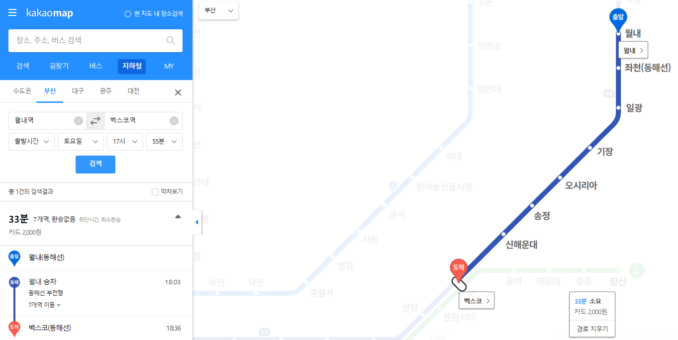3️⃣ 해당 노선의 실시간 열차 운행 시간은 물론, 소요 시간, 환승 정보, 요금까지 모두 한눈에 확인할 수 있어 매우 편리합니다.