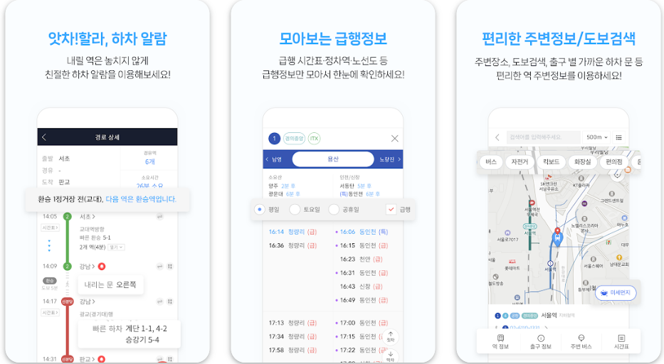 3️⃣ 열차 도착 정보 외에도, 전국 버스 위치 확인, 유실물 조회, 환승 안내, 빠른 출구 정보 등 다양한 부가 기능이 함께 제공되어 대중교통 이용이 훨씬 더 편리해집니다.
