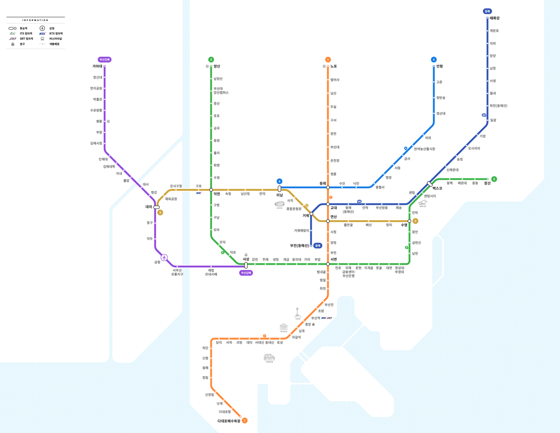 📌 부산 지하철은 1호선부터 4호선, 그리고 동해선을 포함해 도시 전역을 촘촘히 연결하는 교통망으로, 일상 통근부터 여행까지 폭넓게 활용되고 있는 핵심 교통수단입니다.