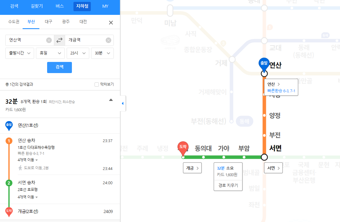 3️⃣ 예상 소요 시간, 이용 요금, 그리고 각 역의 첫차와 막차 시간까지 한 번에 확인할 수 있어 매우 편리합니다.