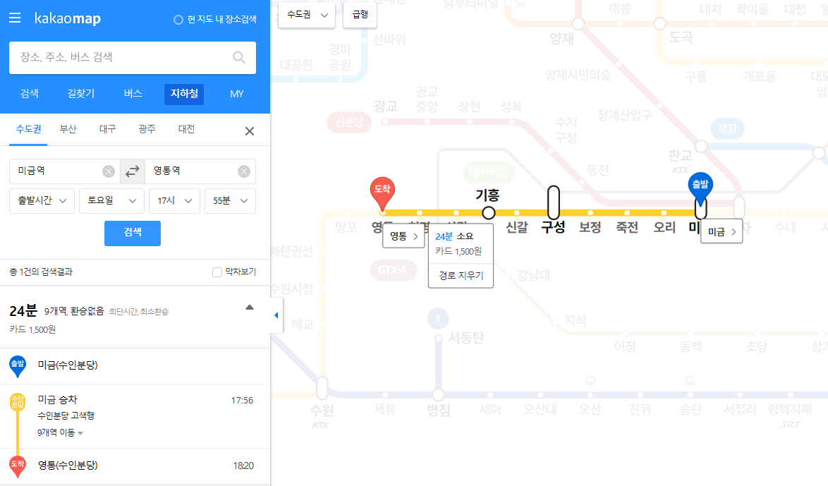 - 출근/퇴근 시간 (07:00~09:00, 17:00~20:00) : 약 5~8분 간격으로 열차 운행
