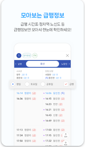3️⃣ 해당 시간대의 열차 정보, 요금, 소요 시간 등이 함께 표시되어 매우 편리합니다.