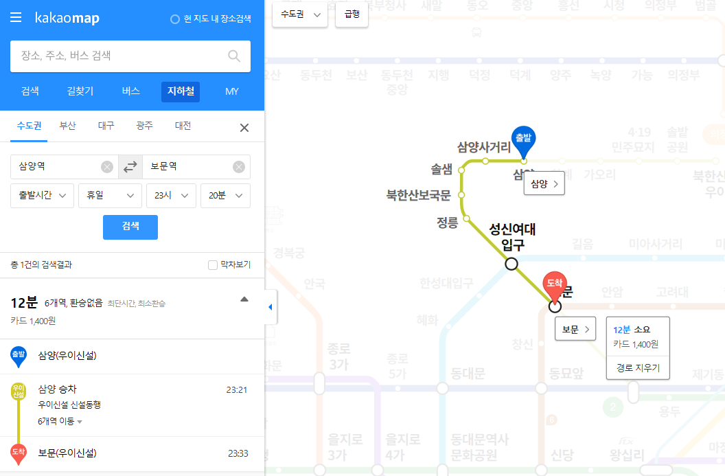 2️⃣ 원하는 출발역과 도착역을 입력하고 조회합니다.